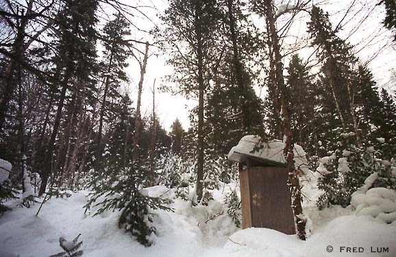 Surrounded by trees,this outhouse at Sunset cabin was quite pleasant. If you can say that about biffies.