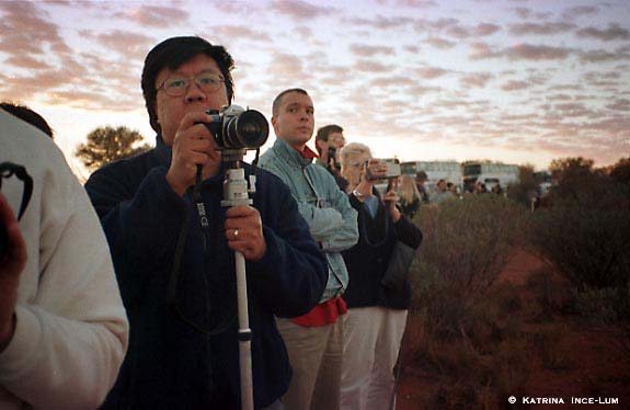 So it's like 6:30 or so in the morning and already there are hundreds of people lined up tocatch the Uluru sunrise.And I'm having a serious case of bed head !At least everybody looks kinda dopey at this hour as well.