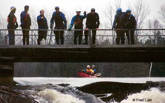 Mikey and Khoan line up for Bridge Rapids on Beaver Creek.