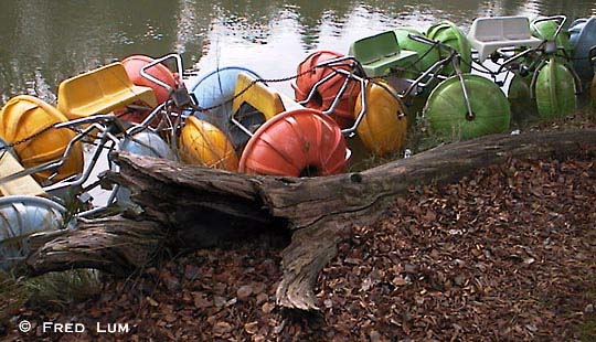 These waterbikes were locked away for the winter at the lake at the end of the line for Puffing Billy.