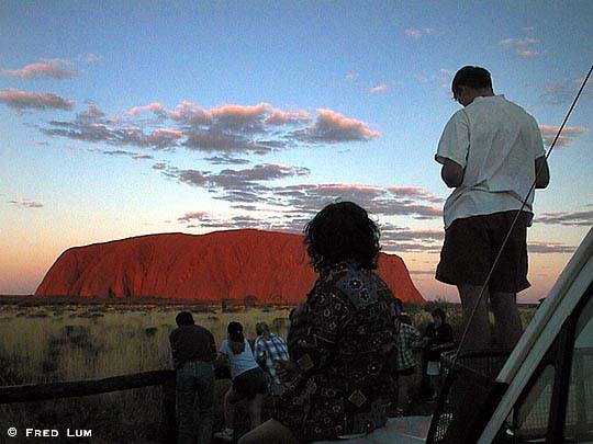 If you're lucky enough to have a truck with a strong roof or hood,then you can geta heads up on the masses for an unobstructed view of the sunset at Uluru.