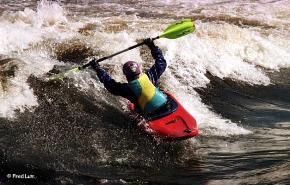 Showing how its done in his Showbiz is Jeremy Knoll as he spinsaround into a backsurf on the Moira River.While doing time atQueens,he was the president of the White Water Club.