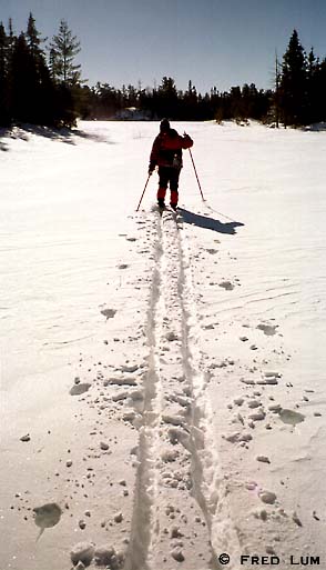 Katrina leads the way back to Smoothwater's main lodge on James Lake.