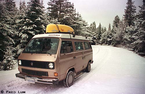 My 85 Westy,Dagger Phantom canoe and snow in Algonquin Provincial park.