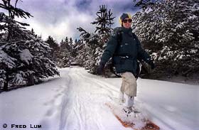 Whether youre in a tent,quinzee or really roughing it at a nearby resort,youve got to bring your skiis or snowshoes.From Mew Lake you can access the Highland Backpacking Trail.Theres also a summer bike trail that goes to Rock Lake.If you like your ski trails groomed and trackset,there are also three ski trails (Fen , Minnesing and Leaf) with various loops along Hwy 60.Minnesing is a favorite of ours and if you go there youll see why.As for snowshoeing,well,there really are no limits to that.